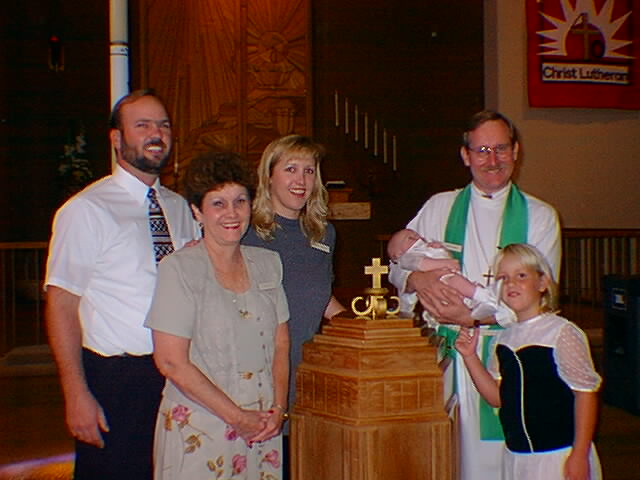 Robert was baptised on October 4, 1998 at Christ Luthern Church in La Mesa. We choose his God parents to be my sister Debbie and Steph's brother Steve. They are also Chelsea's God parents. We know they will be a great help to us in raising our children in a Christian environment.